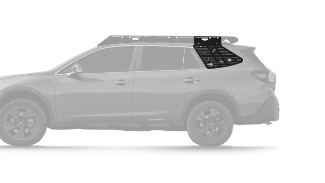 A new way to mount your essential gear for easy access and more storage. Made out of 3/16 aluminum, this lightweight yet strong panel allows you to add convenient mounting options to the side of your vehicle. Perfect to mount your recovery gear, fuel, water, shovel, axe, first aid kit, or nearly anything that can be bolted or strapped down. Compatible with most standard awnings using Sherpa Awning Mounts. Designed to match the window shape of your Subaru, this bolts to your roof rack at the top and suctions to the window at the bottom. No drilling or other modifications are necessary.