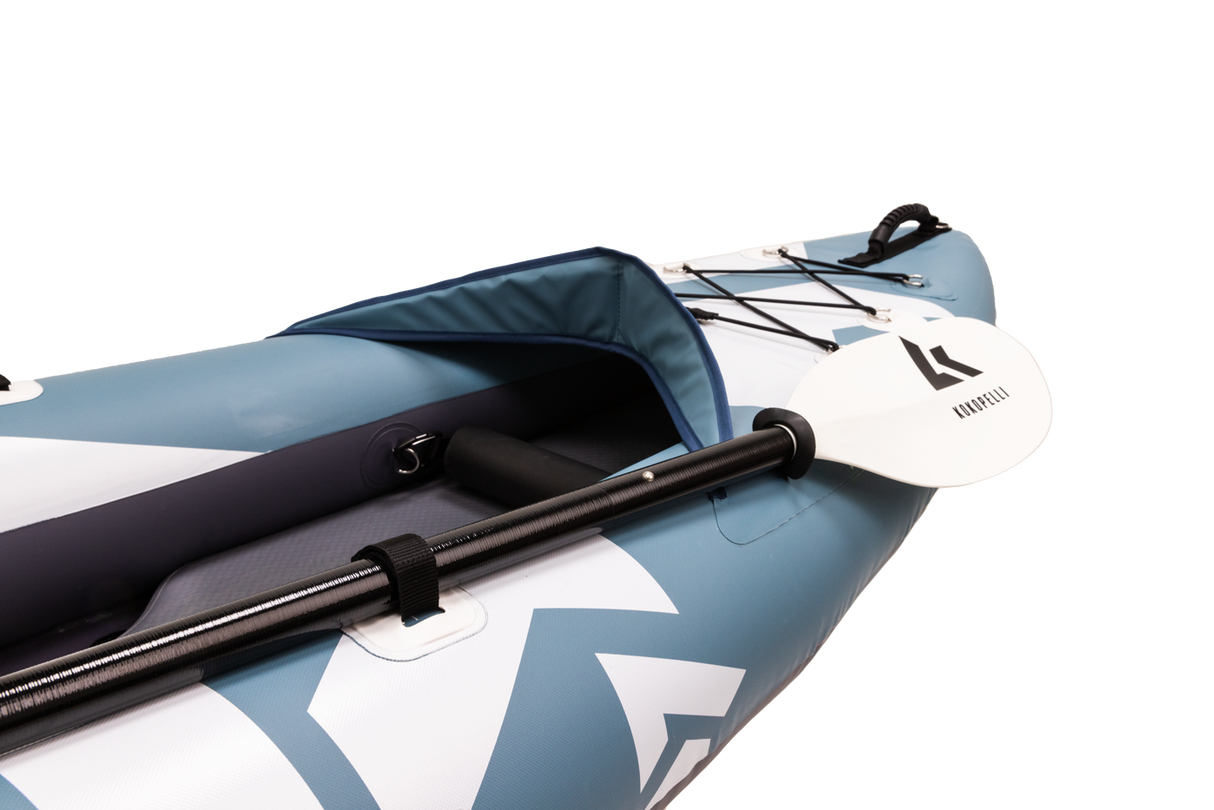 The Platte Plus two person kayak is the new lightweight, packable option for adventure paddlers looking for the best balance of paddling performance, weight saving materials, durability and portability. The two-piece design packs down to an impressively small size and weighs in at 31lb 12oz when fully equipped with key accessories. 1000 denier reinforced PVC construction makes up the two pontoons and a removable drop-stitch floor provides stiffness, added flotation, and enhances tracking capabilities.