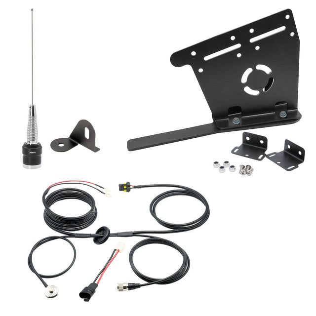 Jeep Wrangler JL, JLU, and Gladiator JT Two-Way GMRS Mobile Radio Kit allows connection during every adventure. Rugged and available in three models – GMR25, G4, G1 – the kit ensures you're reachable during overlanding, rock crawling, or open road trips. Features include Exceptional Range and Clarity, Reliable Rugged Tuned GMRS Antenna equipped with low-loss, double-shielded antenna cable for improved signal strength. Quick and Simple Installation requires no special tools, all necessary hardware and mounts are included. With Adventure-Ready Antenna Mounting and Built-In Connectivity, the kit optimizes location for roof racks and tents and allows easy integration with intercoms, headsets. It offers universal compatibility communicating with all GMRS and FRS radios. Included in the kit are Radio Options; Premium GMRS Tuned Antenna; Heavy Duty Harness; Driver-Side Antenna Mount; Mobile Radio Mount. It's compatible with various Jeep models and all GMRS radios, and also with FRS radios on certain channels. This durable, easily installable, and universally compatible kit helps you stay connected across tough trails and remote areas.